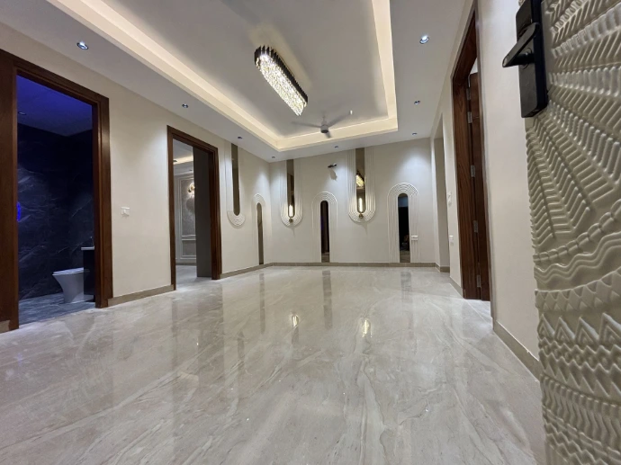 This elegant and modern home boasts sophisticated architecture and high-end finishes, including marble floors.